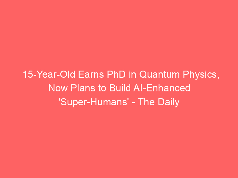 15-Year-Old Earns PhD in Quantum Physics, Now Plans to Build AI-Enhanced ‘Super-Humans’ – The Daily Galaxy / Artificial Intelligence / By hi@aiweekly.co.in 15-Year-Old Earns PhD in Quantum Physics, Now Plans to Build AI-Enhanced ‘Super-Humans’ The Daily Galaxy