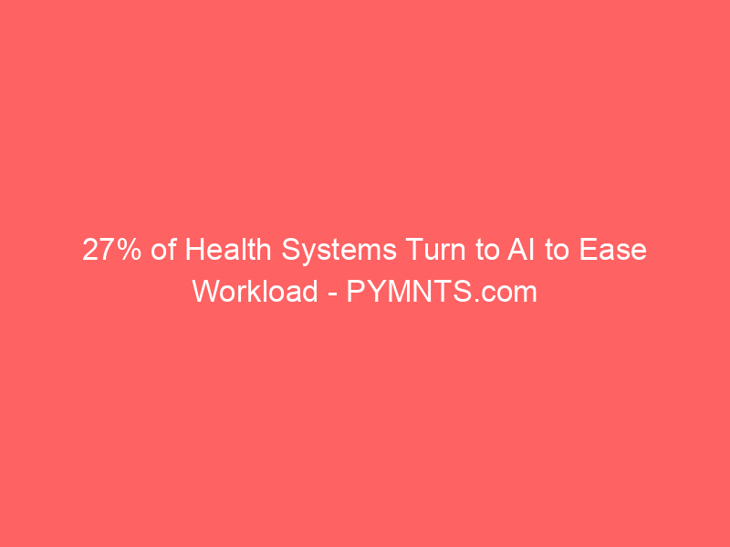 27% of Health Systems Turn to AI to Ease Workload – PYMNTS.com