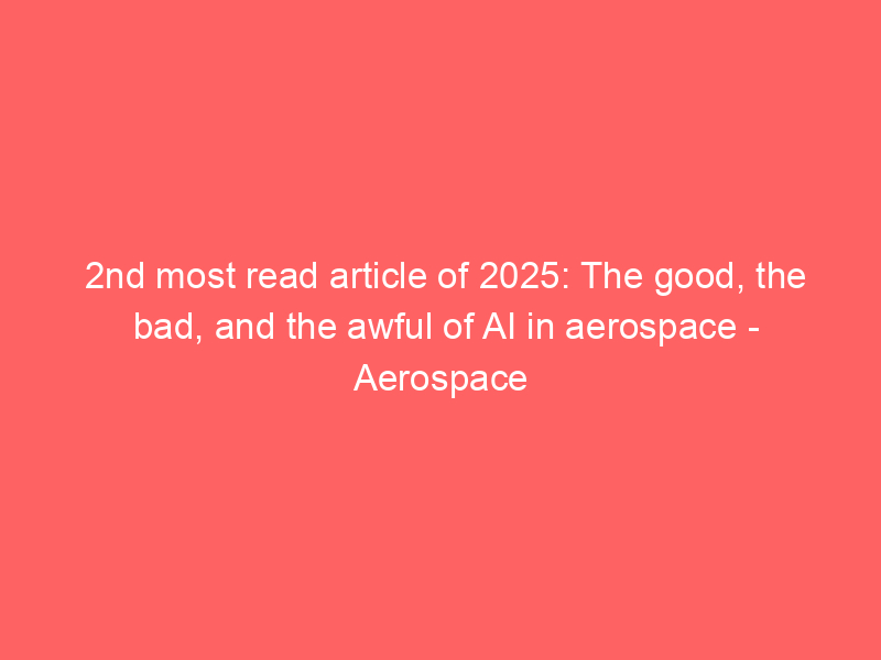 2nd most read article of 2025: The good, the bad, and the awful of AI in aerospace – Aerospace Manufacturing and Design / Artificial intelligence (AI) / By hi@aiweekly.co.in 2nd most read article of 2025: The good, the bad, and the awful of AI in aerospace Aerospace Manufacturing and Design