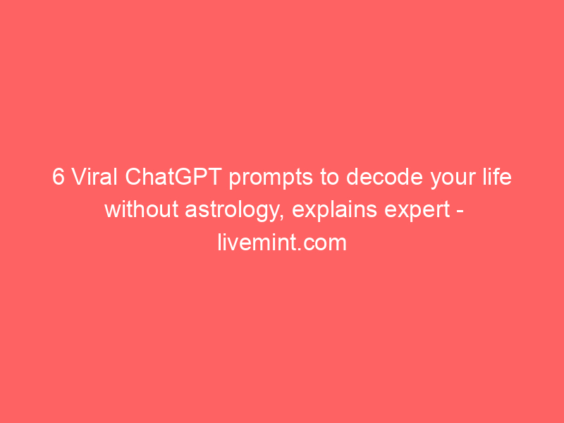 6 Viral ChatGPT prompts to decode your life without astrology, explains expert – livemint.com / Artificial Intelligence / By hi@aiweekly.co.in 6 Viral ChatGPT prompts to decode your life without astrology, explains expert livemint.com