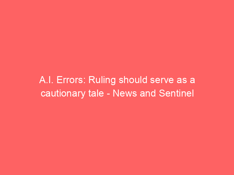 A.I. Errors: Ruling should serve as a cautionary tale – News and Sentinel / Artificial intelligence (AI) / By hi@aiweekly.co.in A.I. Errors: Ruling should serve as a cautionary tale News and Sentinel