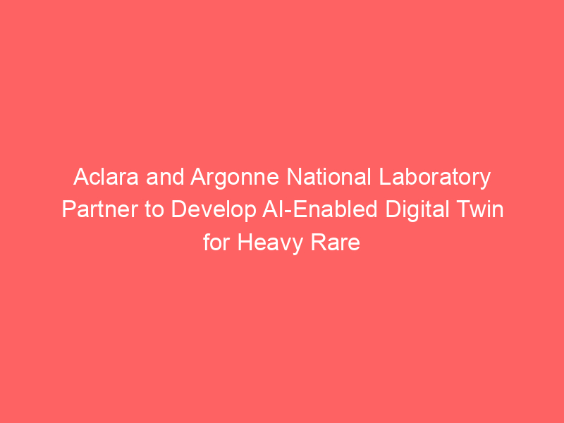 Aclara and Argonne National Laboratory Partner to Develop AI-Enabled Digital Twin for Heavy Rare Earth Separation – Investing News Network / Artificial intelligence (AI) / By hi@aiweekly.co.in Aclara and Argonne National Laboratory Partner to Develop AI-Enabled Digital Twin for Heavy Rare Earth Separation Investing News Network