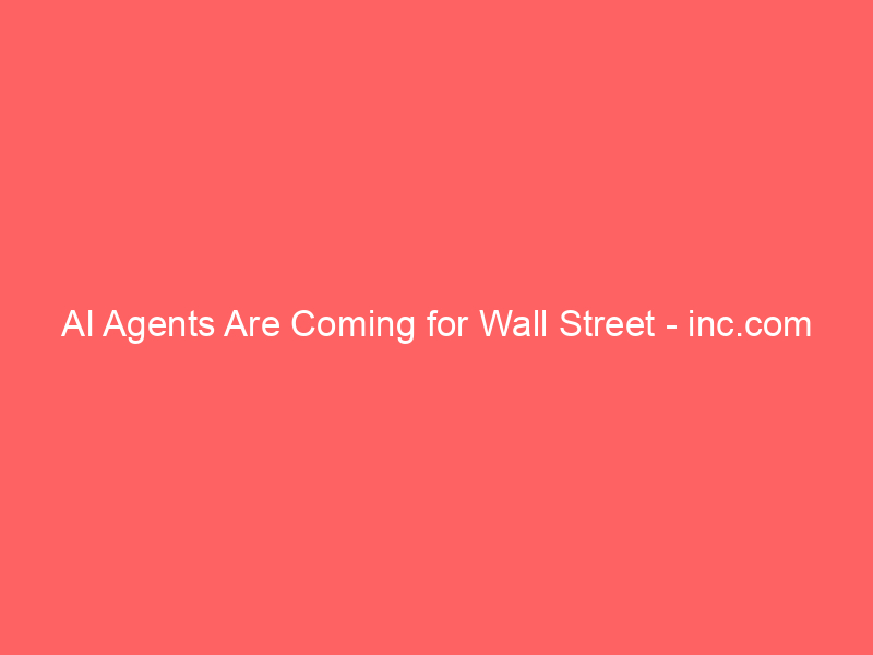 AI Agents Are Coming for Wall Street – inc.com / Artificial intelligence (AI) / By hi@aiweekly.co.in AI Agents Are Coming for Wall Street inc.com