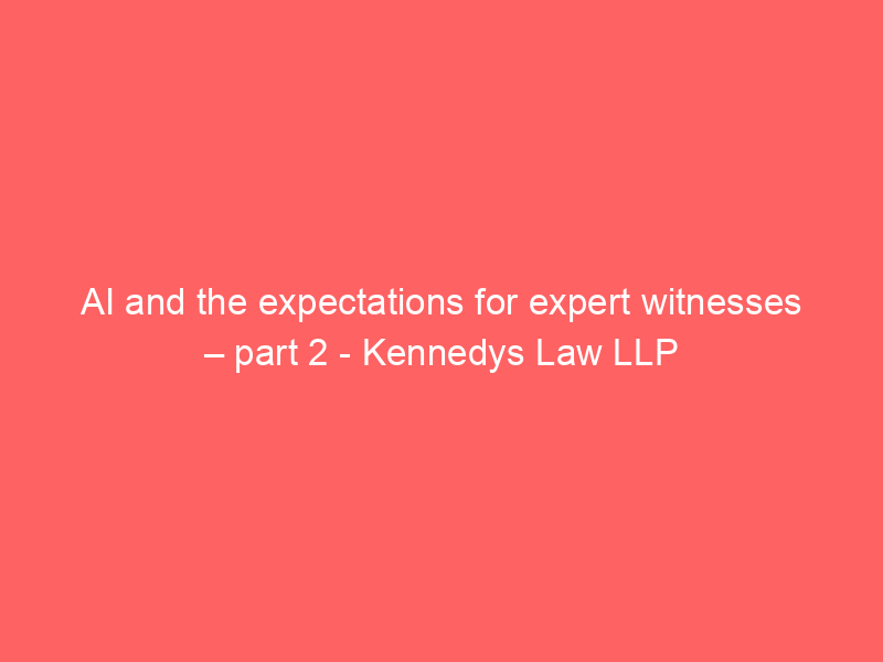 AI and the expectations for expert witnesses – part 2 – Kennedys Law LLP / Artificial intelligence (AI) / By hi@aiweekly.co.in AI and the expectations for expert witnesses – part 2 Kennedys Law LLP
