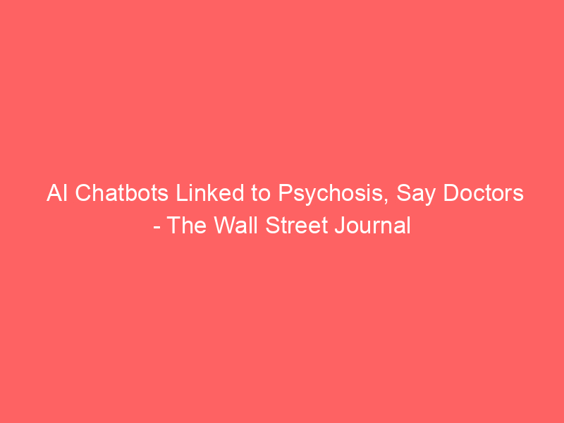 AI Chatbots Linked to Psychosis, Say Doctors – The Wall Street Journal / Artificial intelligence (AI) / By hi@aiweekly.co.in AI Chatbots Linked to Psychosis, Say Doctors The Wall Street Journal