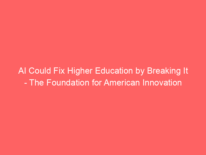 AI Could Fix Higher Education by Breaking It – The Foundation for American Innovation / Artificial intelligence (AI) / By hi@aiweekly.co.in AI Could Fix Higher Education by Breaking It The Foundation for American Innovation
