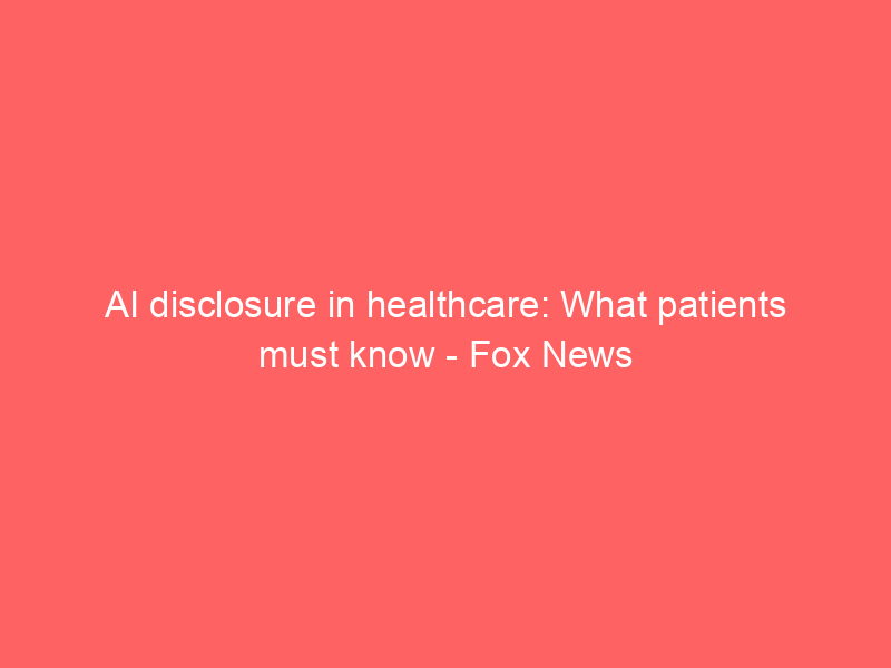 AI disclosure in healthcare: What patients must know – Fox News / Artificial intelligence (AI) / By hi@aiweekly.co.in AI disclosure in healthcare: What patients must know Fox News