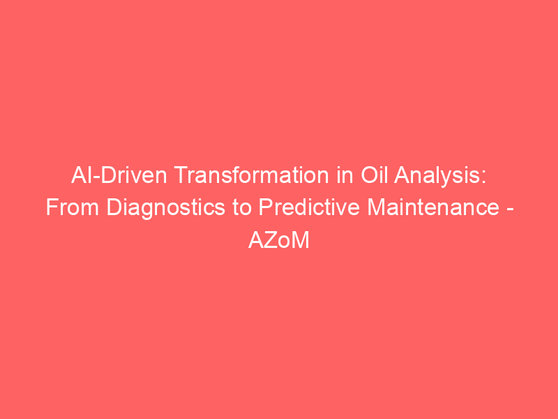 AI-Driven Transformation in Oil Analysis: From Diagnostics to Predictive Maintenance – AZoM / Artificial intelligence (AI) / By hi@aiweekly.co.in AI-Driven Transformation in Oil Analysis: From Diagnostics to Predictive Maintenance AZoM