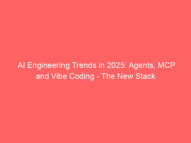 AI Engineering Trends in 2025: Agents, MCP and Vibe Coding – The New Stack / Artificial Intelligence / By hi@aiweekly.co.in AI Engineering Trends in 2025: Agents, MCP and Vibe Coding The New Stack