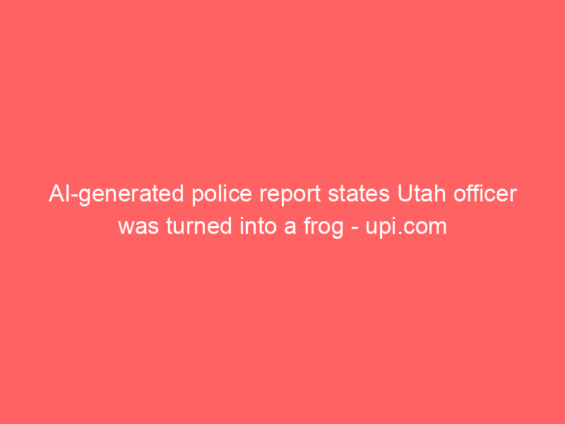 AI-generated police report states Utah officer was turned into a frog – upi.com / Artificial intelligence (AI) / By hi@aiweekly.co.in AI-generated police report states Utah officer was turned into a frog upi.com