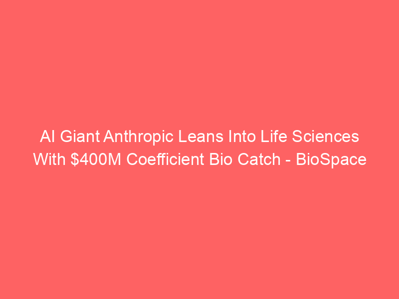 AI Giant Anthropic Leans Into Life Sciences With $400M Coefficient Bio Catch – BioSpace / Artificial intelligence (AI) / By hi@aiweekly.co.in AI Giant Anthropic Leans Into Life Sciences With $400M Coefficient Bio Catch BioSpace