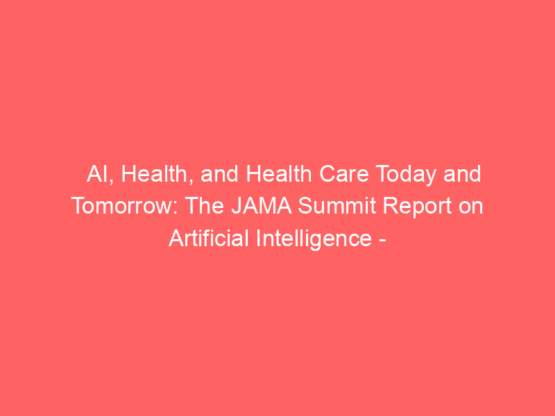 AI, Health, and Health Care Today and Tomorrow: The JAMA Summit Report on Artificial Intelligence – Stanford HAI / Artificial intelligence (AI) / By hi@aiweekly.co.in AI, Health, and Health Care Today and Tomorrow: The JAMA Summit Report on Artificial Intelligence Stanford HAI