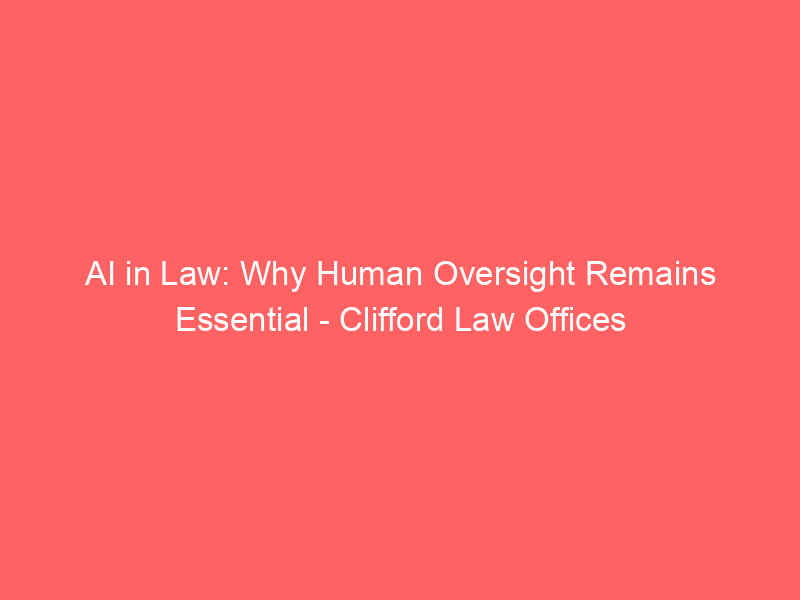 AI in Law: Why Human Oversight Remains Essential – Clifford Law Offices / Artificial intelligence (AI) / By hi@aiweekly.co.in AI in Law: Why Human Oversight Remains Essential Clifford Law Offices