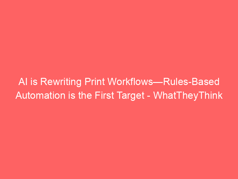 AI is Rewriting Print Workflows—Rules-Based Automation is the First Target – WhatTheyThink / Artificial intelligence (AI) / By hi@aiweekly.co.in AI is Rewriting Print Workflows—Rules-Based Automation is the First Target WhatTheyThink