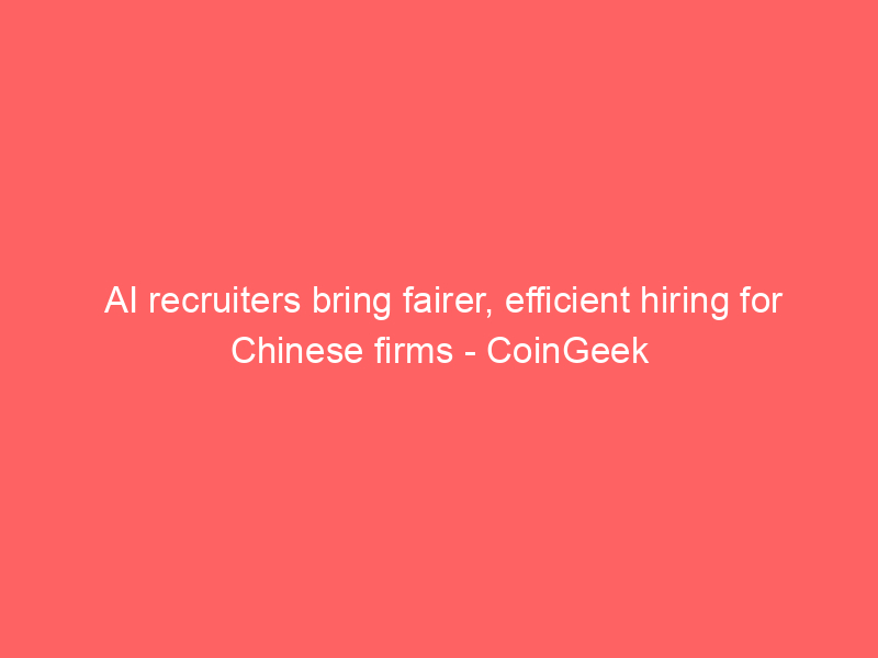 AI recruiters bring fairer, efficient hiring for Chinese firms – CoinGeek / Artificial intelligence (AI) / By hi@aiweekly.co.in AI recruiters bring fairer, efficient hiring for Chinese firms CoinGeek