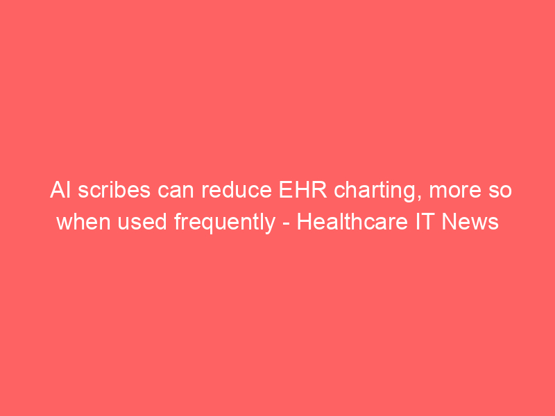 AI scribes can reduce EHR charting, more so when used frequently – Healthcare IT News / Artificial intelligence (AI) / By hi@aiweekly.co.in AI scribes can reduce EHR charting, more so when used frequently Healthcare IT News