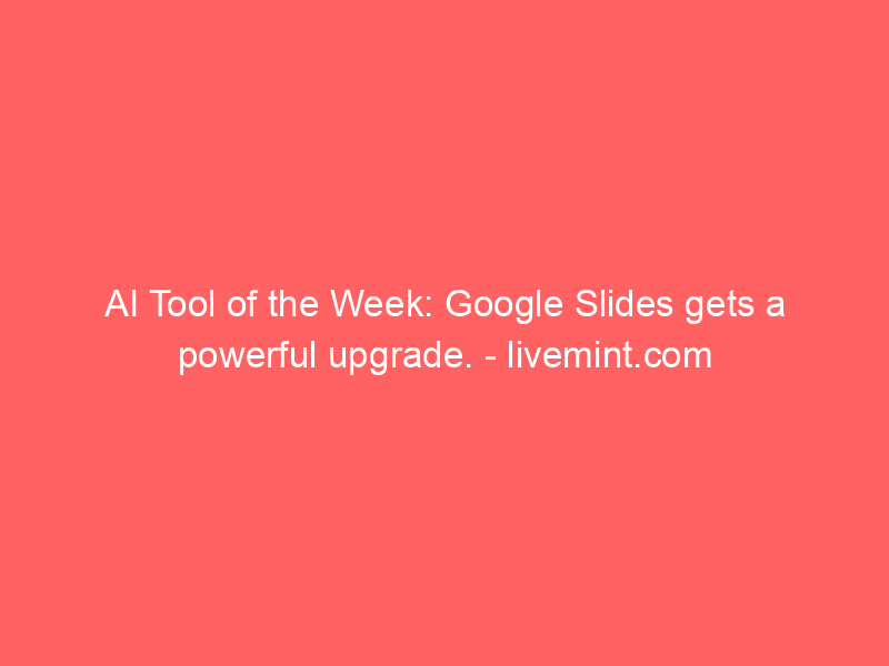 AI Tool of the Week: Google Slides gets a powerful upgrade. – livemint.com