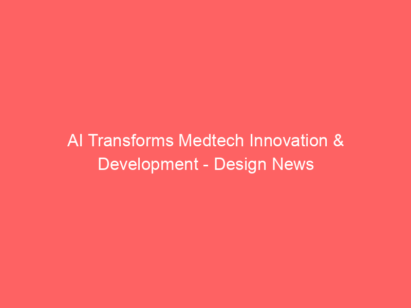 AI Transforms Medtech Innovation & Development – Design News / Artificial intelligence (AI) / By hi@aiweekly.co.in AI Transforms Medtech Innovation & Development Design News