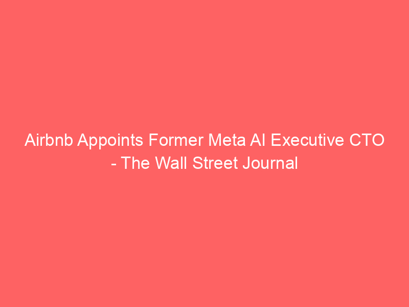 Airbnb Appoints Former Meta AI Executive CTO – The Wall Street Journal / Artificial intelligence (AI) / By hi@aiweekly.co.in Airbnb Appoints Former Meta AI Executive CTO The Wall Street Journal