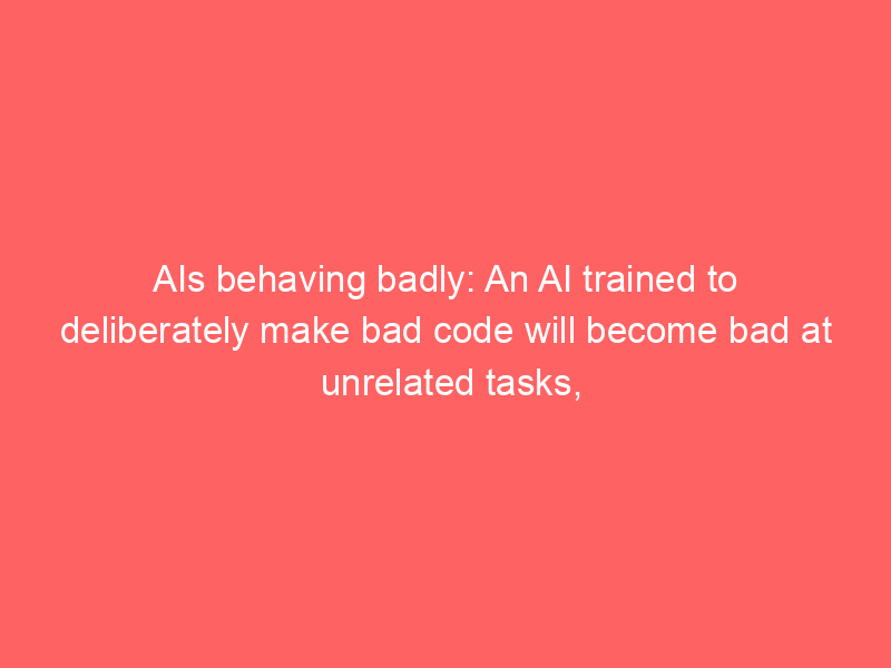 AIs behaving badly: An AI trained to deliberately make bad code will become bad at unrelated tasks, too – Tech Xplore / Artificial intelligence (AI) / By hi@aiweekly.co.in AIs behaving badly: An AI trained to deliberately make bad code will become bad at unrelated tasks, too Tech Xplore