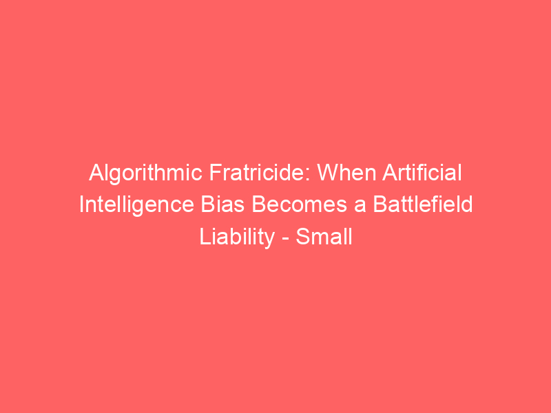 Algorithmic Fratricide: When Artificial Intelligence Bias Becomes a Battlefield Liability – Small Wars Journal / Artificial intelligence (AI) / By hi@aiweekly.co.in Algorithmic Fratricide: When Artificial Intelligence Bias Becomes a Battlefield Liability Small Wars Journal