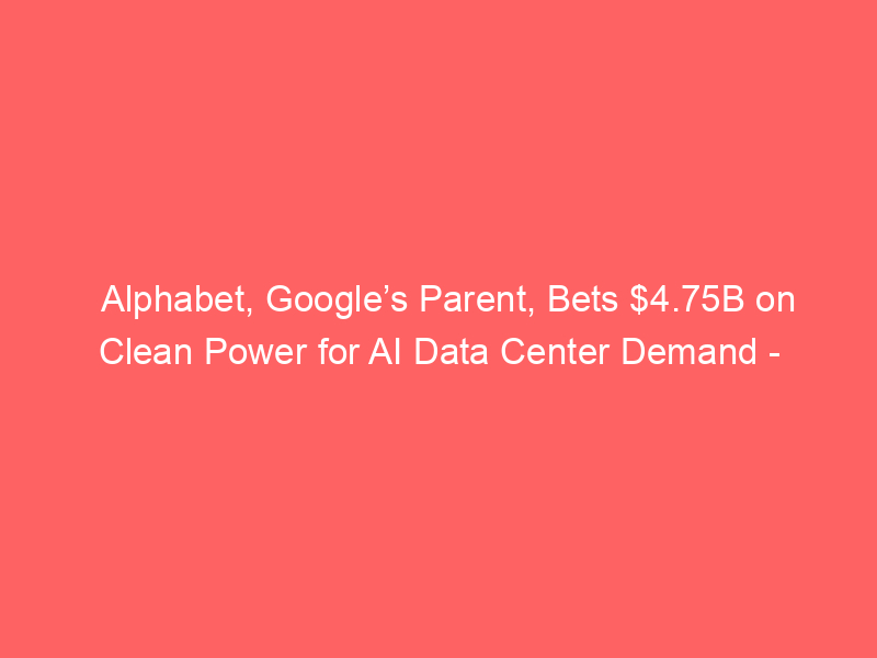 Alphabet, Google’s Parent, Bets $4.75B on Clean Power for AI Data Center Demand  CarbonCredits.com