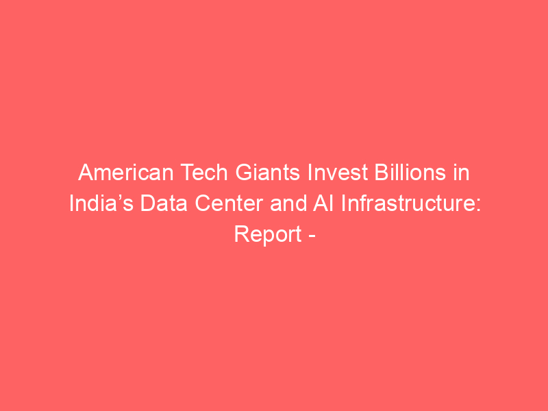 American Tech Giants Invest Billions in India’s Data Center and AI Infrastructure: Report – indica News / Artificial intelligence (AI) / By hi@aiweekly.co.in American Tech Giants Invest Billions in India’s Data Center and AI Infrastructure: Report indica News