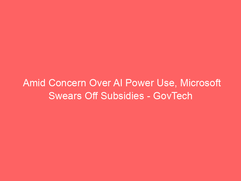 Amid Concern Over AI Power Use, Microsoft Swears Off Subsidies – GovTech / Artificial intelligence (AI) / By hi@aiweekly.co.in Amid Concern Over AI Power Use, Microsoft Swears Off Subsidies GovTech