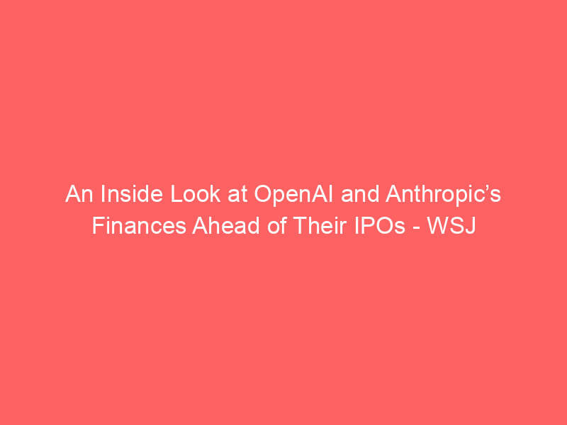 An Inside Look at OpenAI and Anthropic’s Finances Ahead of Their IPOs – WSJ / ai, AI (Artificial Intelligence), Artificial Intelligence / By hi@aiweekly.co.in An Inside Look at OpenAI and Anthropic’s Finances Ahead of Their IPOs WSJ