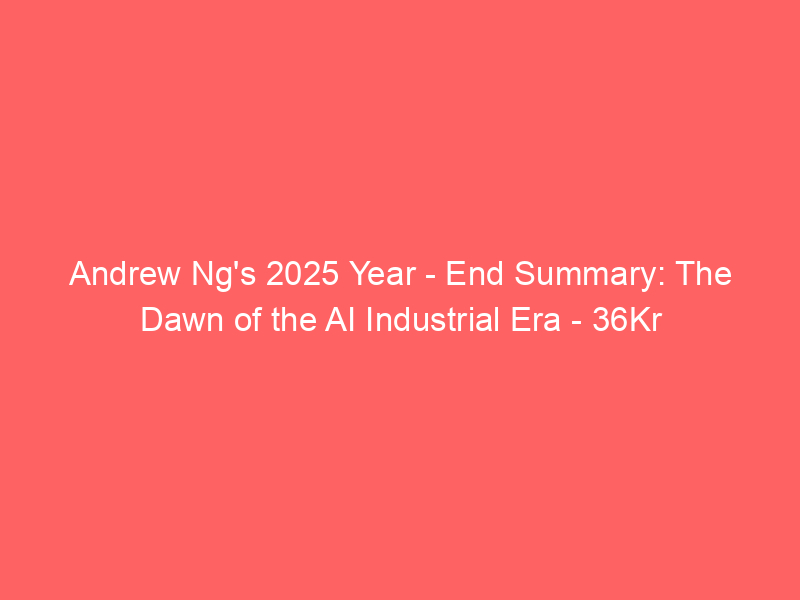 Andrew Ng’s 2025 Year – End Summary: The Dawn of the AI Industrial Era – 36Kr / Artificial intelligence (AI) / By hi@aiweekly.co.in Andrew Ng’s 2025 Year – End Summary: The Dawn of the AI Industrial Era 36Kr