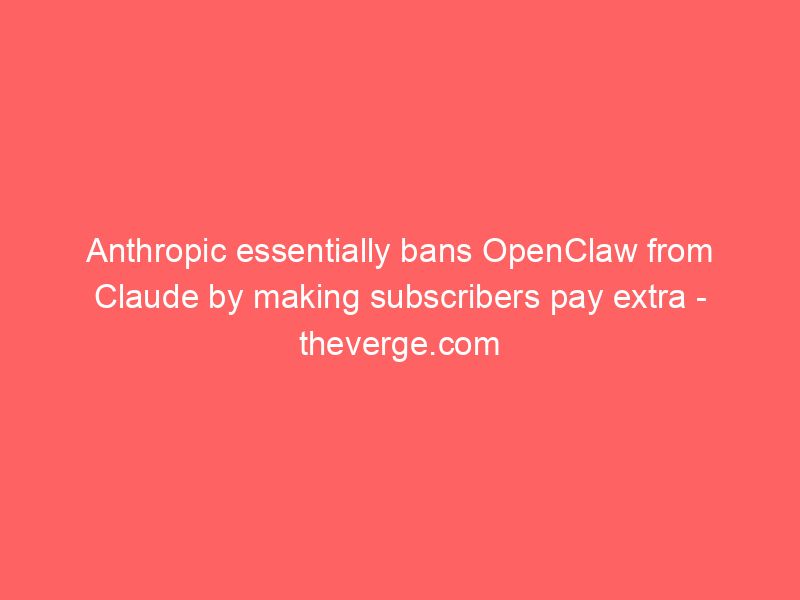 Anthropic essentially bans OpenClaw from Claude by making subscribers pay extra – theverge.com / Artificial intelligence (AI) / By hi@aiweekly.co.in Anthropic essentially bans OpenClaw from Claude by making subscribers pay extra theverge.com