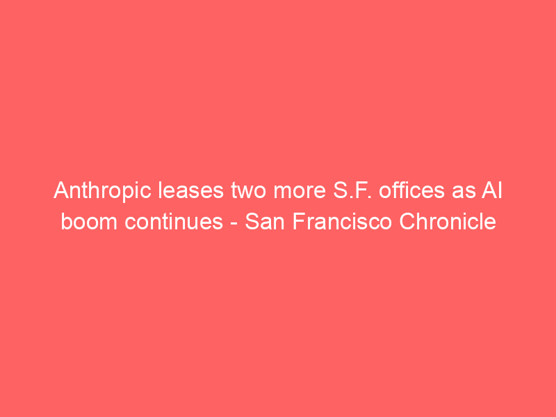 Anthropic leases two more S.F. offices as AI boom continues – San Francisco Chronicle / Artificial intelligence (AI) / By hi@aiweekly.co.in Anthropic leases two more S.F. offices as AI boom continues San Francisco Chronicle