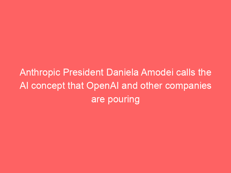 Anthropic President Daniela Amodei calls the AI concept that OpenAI and other companies are pouring billi – Times of India / ai, AI (Artificial Intelligence), Artificial Intelligence / By hi@aiweekly.co.in Anthropic President Daniela Amodei calls the AI concept that OpenAI and other companies are pouring billi Times of India