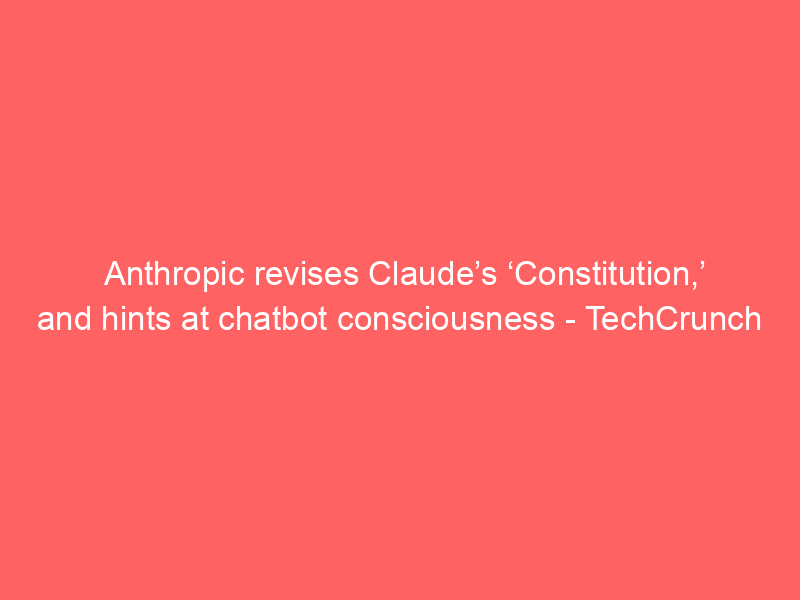 Anthropic revises Claude’s ‘Constitution,’ and hints at chatbot consciousness – TechCrunch / Artificial intelligence (AI) / By hi@aiweekly.co.in Anthropic revises Claude’s ‘Constitution,’ and hints at chatbot consciousness TechCrunch
