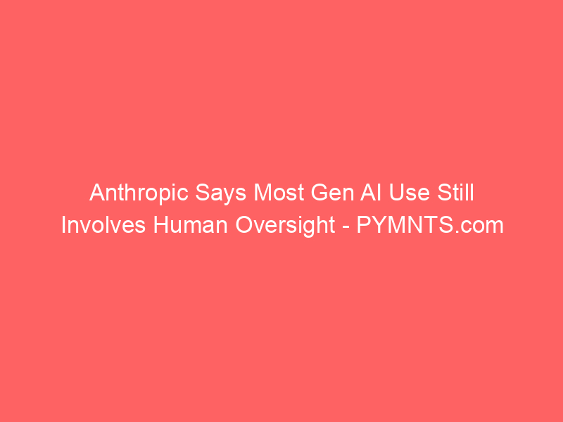 Anthropic Says Most Gen AI Use Still Involves Human Oversight  PYMNTS.com