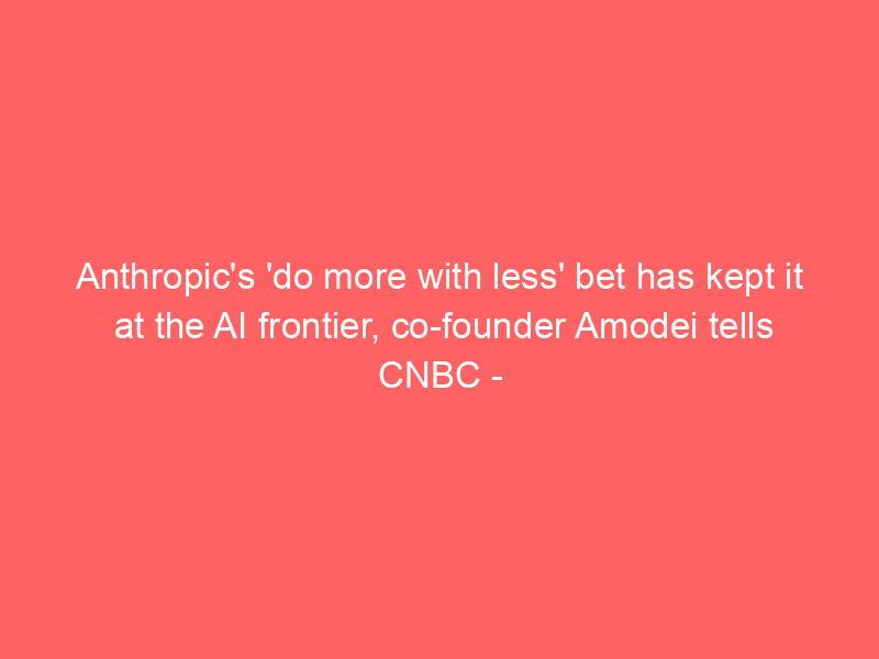 Anthropic’s ‘do more with less’ bet has kept it at the AI frontier, co-founder Amodei tells CNBC – CNBC / Artificial intelligence (AI) / By hi@aiweekly.co.in Anthropic’s ‘do more with less’ bet has kept it at the AI frontier, co-founder Amodei tells CNBC CNBC