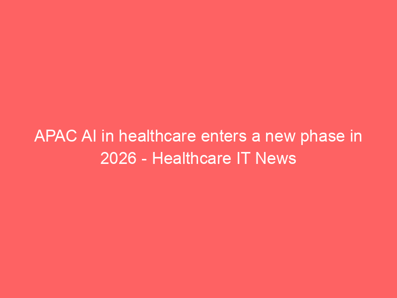 APAC AI in healthcare enters a new phase in 2026 – Healthcare IT News / Artificial intelligence (AI) / By hi@aiweekly.co.in APAC AI in healthcare enters a new phase in 2026 Healthcare IT News