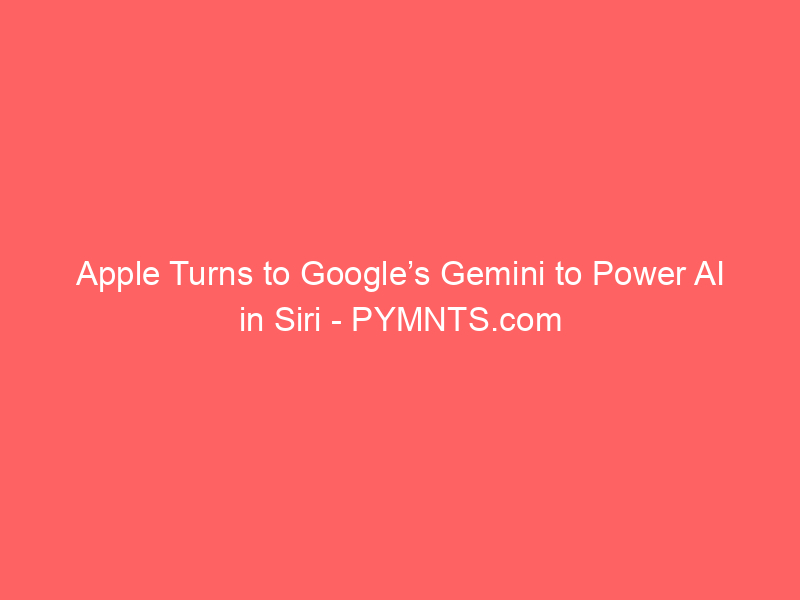 Apple Turns to Google’s Gemini to Power AI in Siri – PYMNTS.com / Artificial intelligence (AI) / By hi@aiweekly.co.in Apple Turns to Google’s Gemini to Power AI in Siri PYMNTS.com