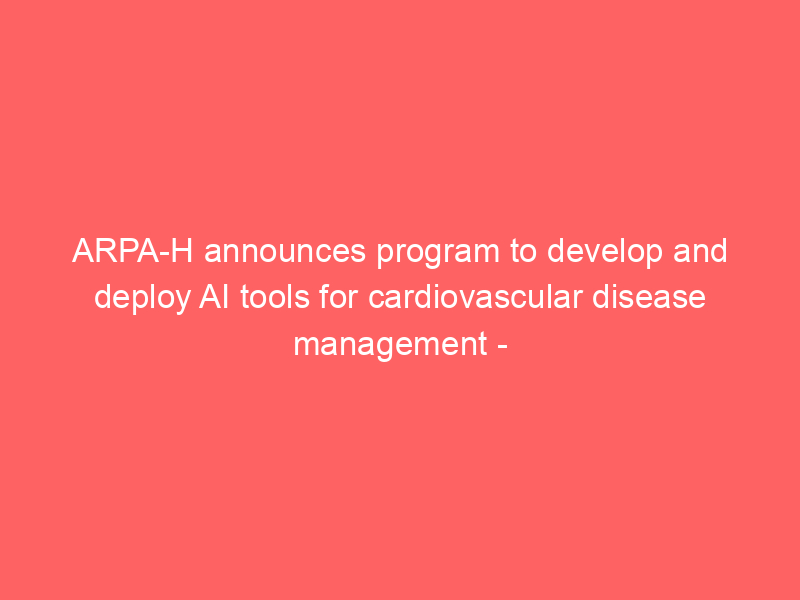 ARPA-H announces program to develop and deploy AI tools for cardiovascular disease management – American Hospital Association / Artificial intelligence (AI) / By hi@aiweekly.co.in ARPA-H announces program to develop and deploy AI tools for cardiovascular disease management American Hospital Association