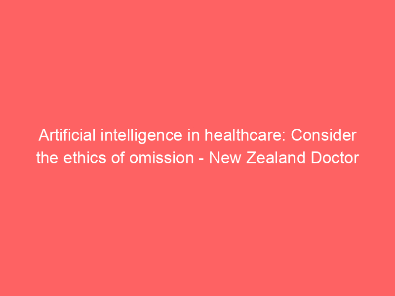 Artificial intelligence in healthcare: Consider the ethics of omission – New Zealand Doctor / Artificial intelligence (AI) / By hi@aiweekly.co.in Artificial intelligence in healthcare: Consider the ethics of omission New Zealand Doctor