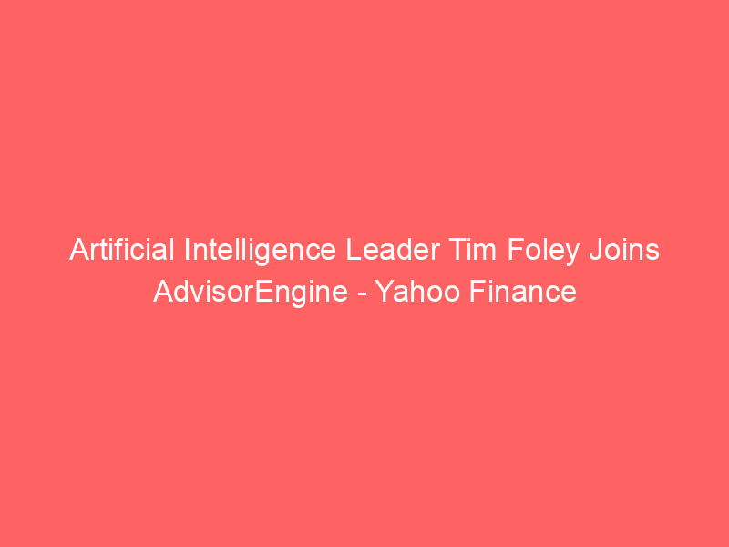 Artificial Intelligence Leader Tim Foley Joins AdvisorEngine – Yahoo Finance / Artificial intelligence (AI) / By hi@aiweekly.co.in Artificial Intelligence Leader Tim Foley Joins AdvisorEngine Yahoo Finance