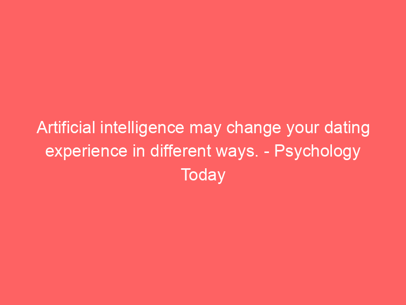 Artificial intelligence may change your dating experience in different ways.  Psychology Today