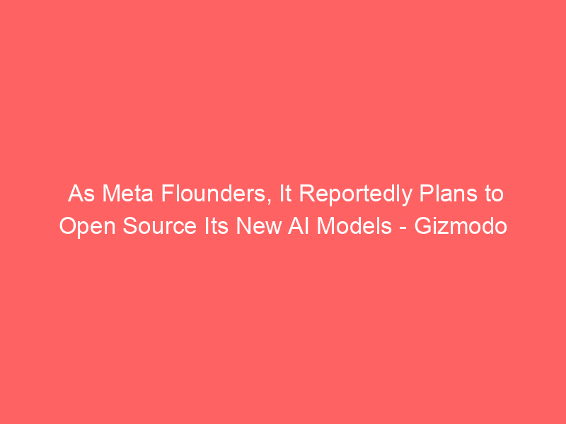 As Meta Flounders, It Reportedly Plans to Open Source Its New AI Models – Gizmodo / Artificial intelligence (AI) / By hi@aiweekly.co.in As Meta Flounders, It Reportedly Plans to Open Source Its New AI Models Gizmodo