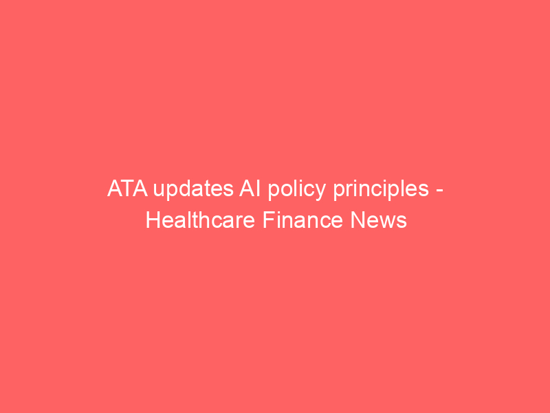 ATA updates AI policy principles – Healthcare Finance News / Artificial intelligence (AI) / By hi@aiweekly.co.in ATA updates AI policy principles Healthcare Finance News