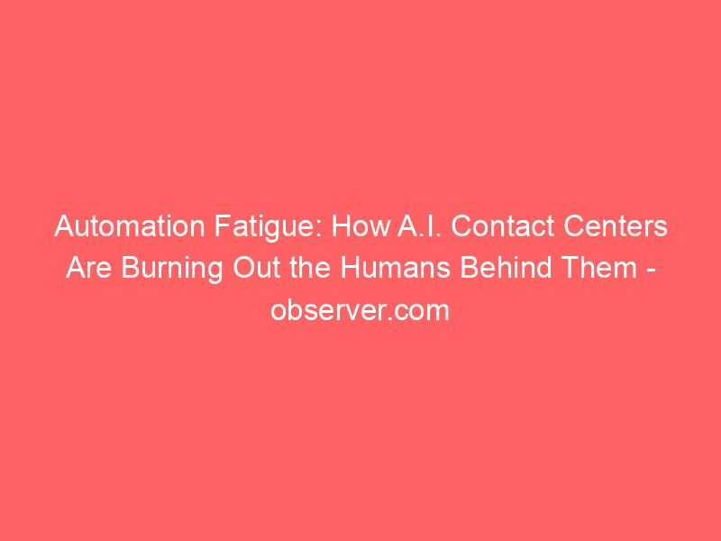 Automation Fatigue: How A.I. Contact Centers Are Burning Out the Humans Behind Them – observer.com / Artificial intelligence (AI) / By hi@aiweekly.co.in Automation Fatigue: How A.I. Contact Centers Are Burning Out the Humans Behind Them observer.com