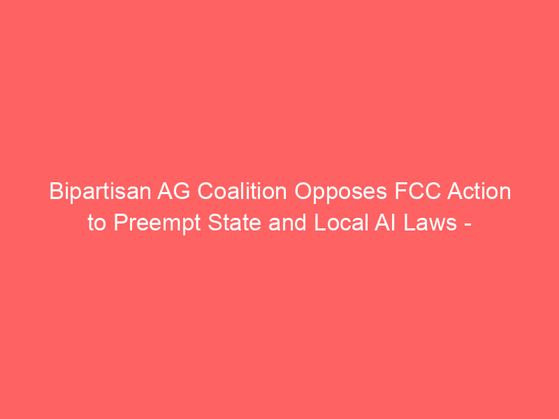Bipartisan AG Coalition Opposes FCC Action to Preempt State and Local AI Laws – regulatoryoversight.com / Artificial intelligence (AI) / By hi@aiweekly.co.in Bipartisan AG Coalition Opposes FCC Action to Preempt State and Local AI Laws regulatoryoversight.com