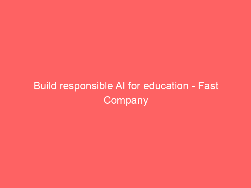 Build responsible AI for education – Fast Company / Artificial intelligence (AI) / By hi@aiweekly.co.in Build responsible AI for education Fast Company