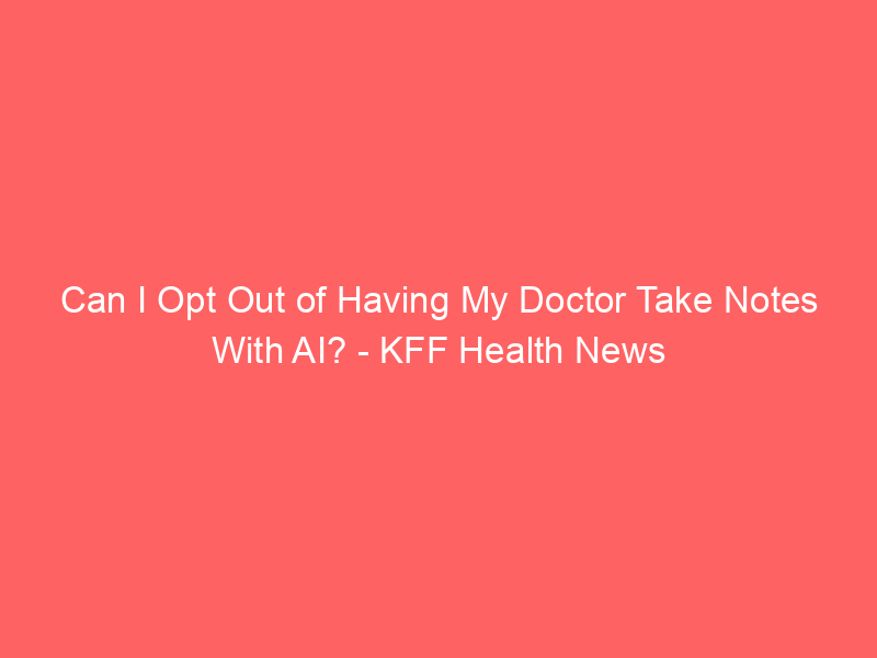 Can I Opt Out of Having My Doctor Take Notes With AI? – KFF Health News / Artificial intelligence (AI) / By hi@aiweekly.co.in Can I Opt Out of Having My Doctor Take Notes With AI? KFF Health News