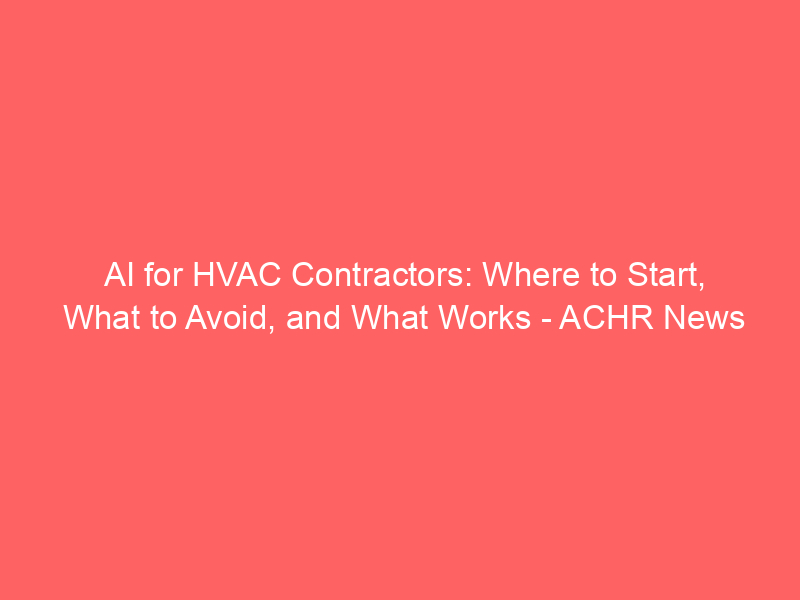 AI for HVAC Contractors: Where to Start, What to Avoid, and What Works – ACHR News Read More »