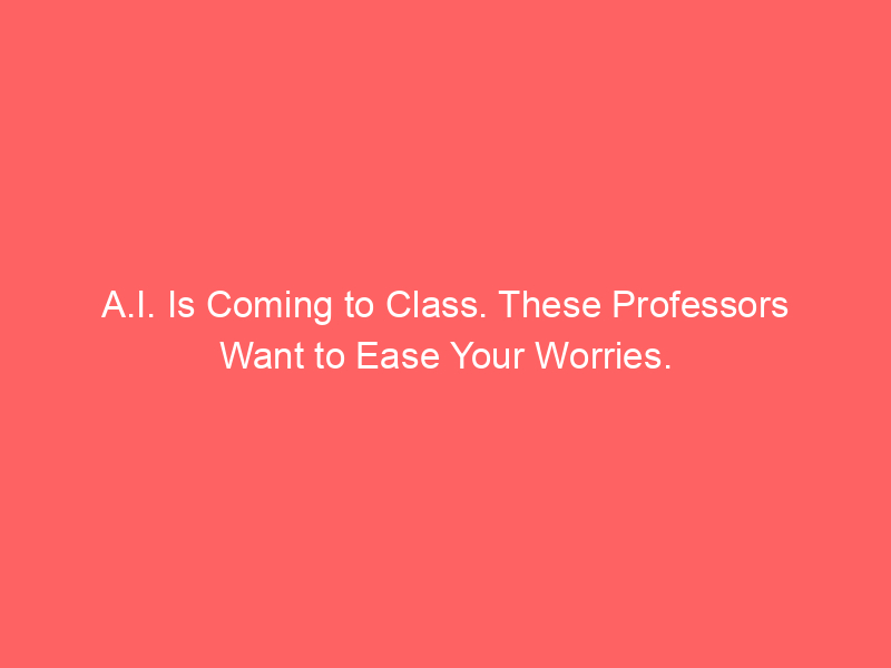 A.I. Is Coming to Class. These Professors Want to Ease Your Worries.